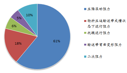 根据近些年来的研究,在水平方向布置的输送带的总驱动能耗中,约有61%的能耗用于克服输送带在通过托辊和带轮的压陷滚动阻力。