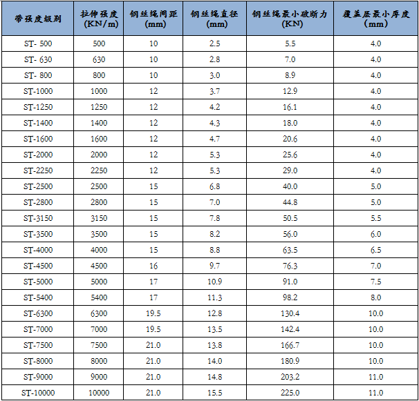注:覆盖胶厚度、钢丝绳芯直径、绳间距可以根据客户要求定制。